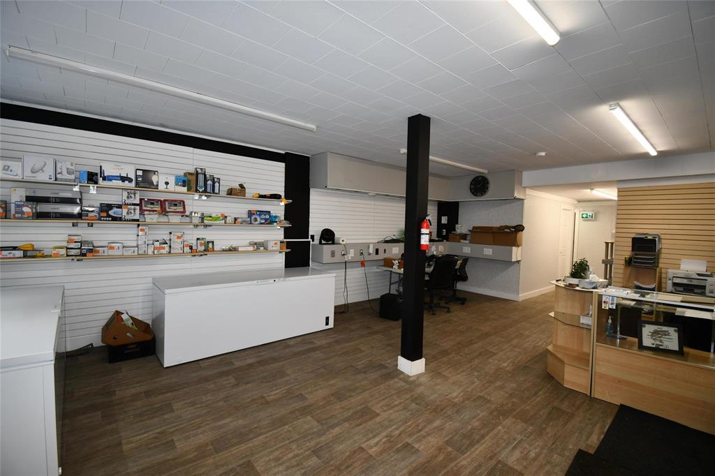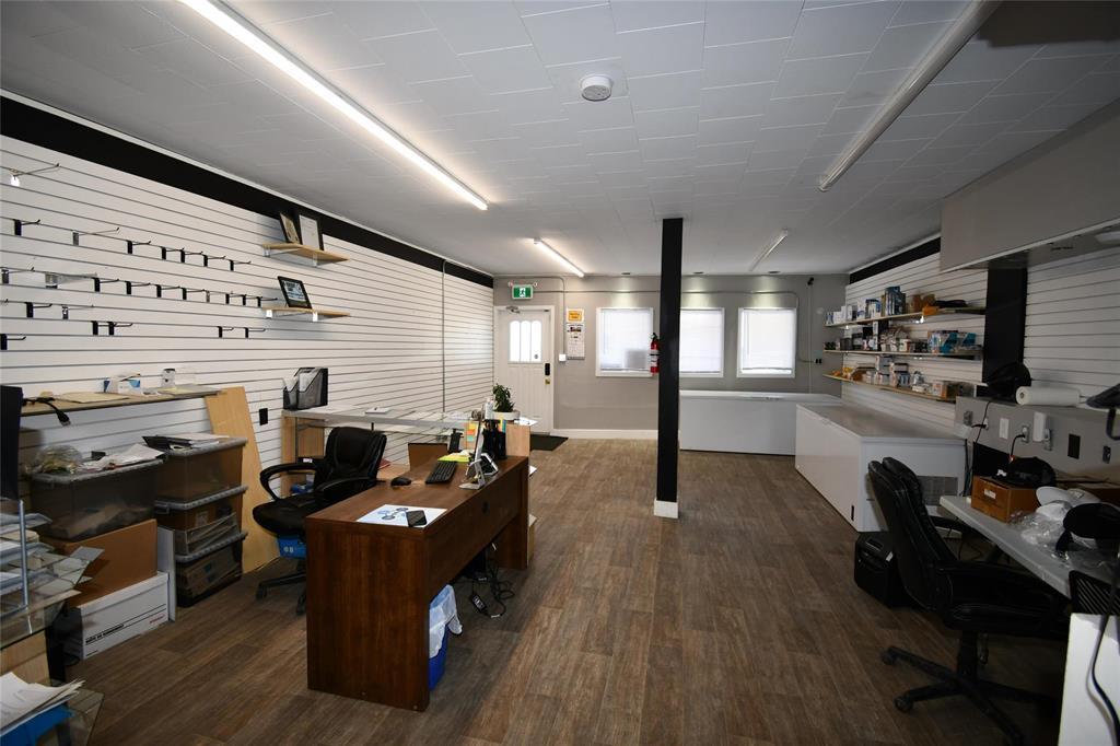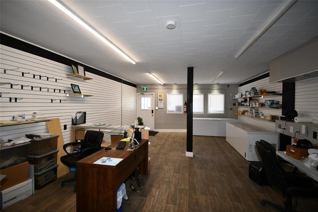 R31//Russell/Great retail opportunity in the heart of downtown Russell!! 18'x40' retail space at the front of the building which includes two office spaces (5-9 x 14-6 and 6-10 x 10-4). The open 18'-6' x 60' back has ample storage space with high ceilings including a desk and many shelves. Newly insulated and drywalled, new chipboard and resealed roof, renovated bathroom, new electric (2022) and new flooring and paint in the front. Partial basement with more storage space. 200 amp service. (id:30530)