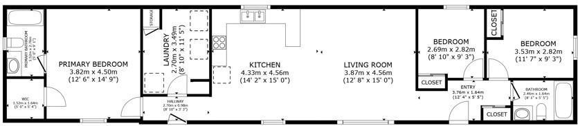 3 Bedroom 2 Bathroom 1,216 ft2