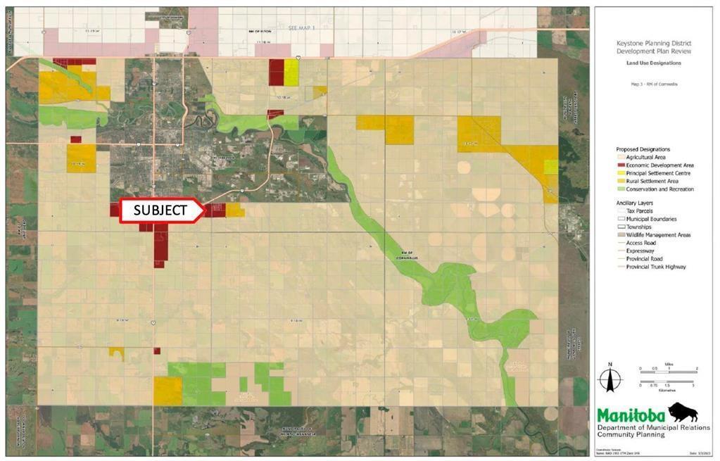 CSE//Brandon/76.62 acres of AG80 Agricultural General Zoned Land located on the outskirts of Brandon, which may offer future development potential. This land is currently designated as Economic Development area, in the Keystone Planning District's Development Plan Draft. The subject site has the potential to be developed with commercial or industrial properties. However, the City of Brandon would have influence on the allowable development, and may limit rural development without approved servicing. It is noted that the current use of the site, until any settlement developments occur, if any occur at all, is for agricultural uses. Thorough buyer due diligence is strongly encouraged with all relevant governing bodies and professionals, including but not limited to: the City of Brandon/Community Planning Branch, Keystone Planning District, HMK, the Province of Manitoba, Manitoba Environment and Climate, Provincial Highways, as well as seeking legal and accounting advice. Approx. 56 arable acres of hay, and 20.62 acres of pasture. Property boundaries pictured are approximate. Seller has preference to sell with MLS#202427385. Offers as received. (id:30530)